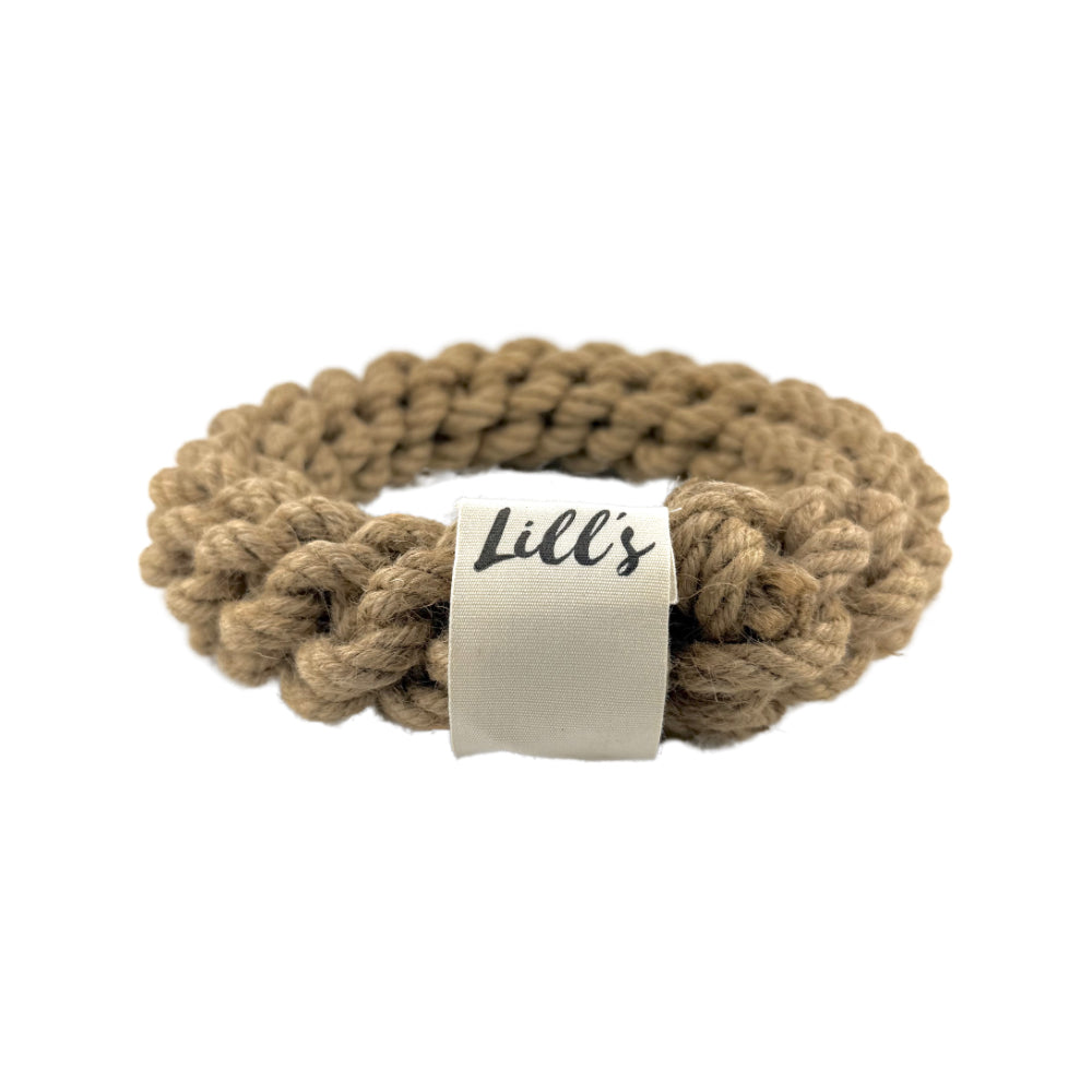 Ce jouet en forme de Donut pour chien en chanvre est fabriquée à la main à partir de fibres 100% naturelles et sans plastique.