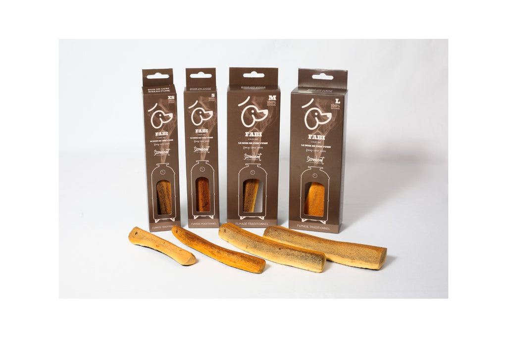 Les bois de cerf Fabi, sont fumés et en biseau, avec une moelle plus accessible.