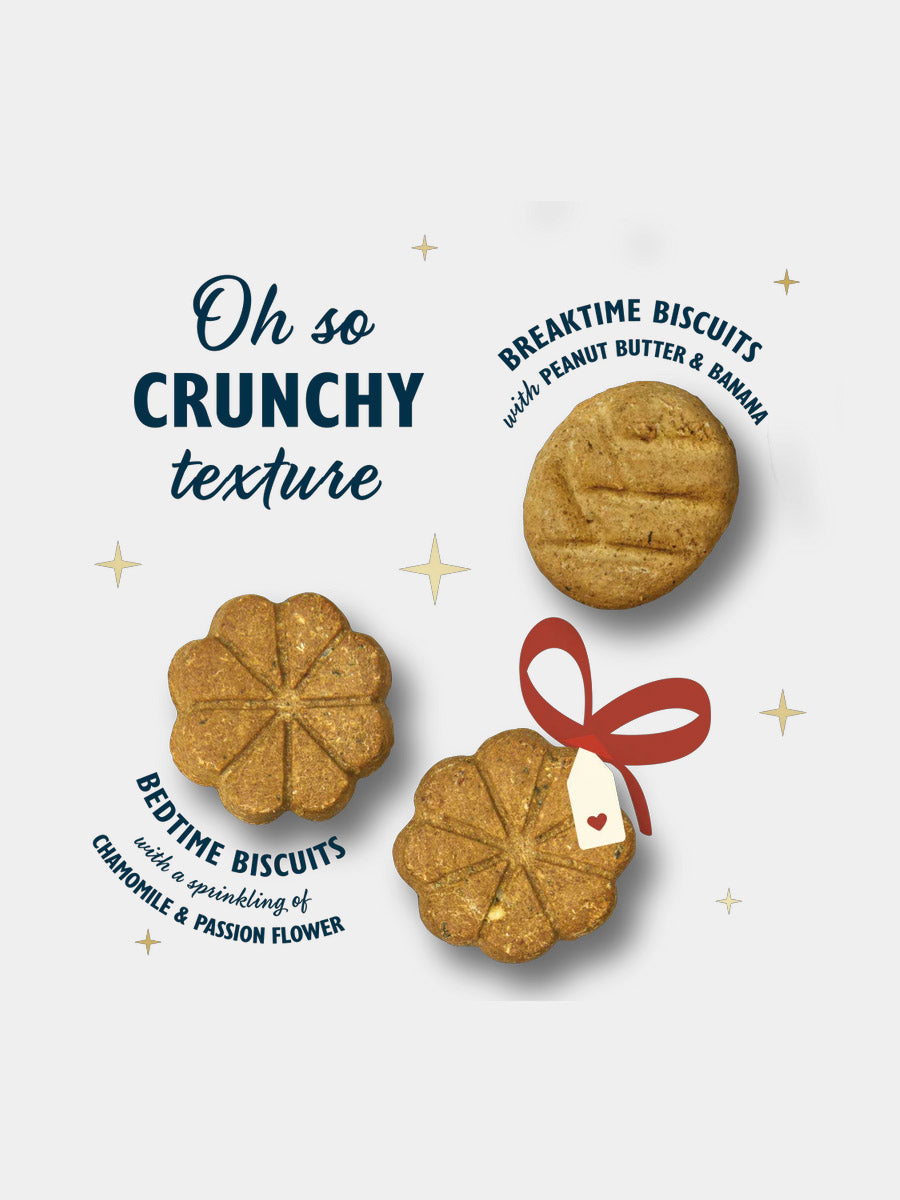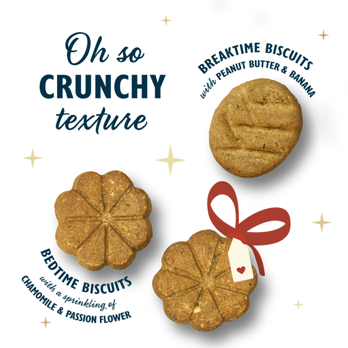 Une délicieuse gùterie au coucher, faite de miel, de yaourt, de camomille et de fleurs de la passion, pour aider à apaiser votre chien la veille de Noël, avant l'arrivée du PÚre Noël.
