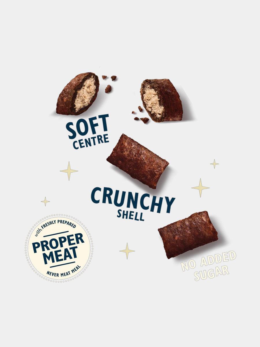Riches en volaille et poisson de qualité, sans céréales et sans sucre ajouté, ces gourmandises peuvent être offertes presque sans modération ! En fonction du poids de votre chat, il est recommandé d’en distribuer jusqu'à 10 par jour (voir les détails sur le paquet).