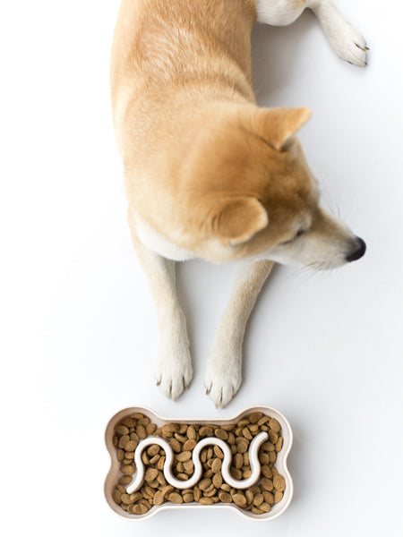 Gamelle anti-glouton pour chien en forme d'os afin que votre chien se nourrisse plus lentement et de façon ludique.